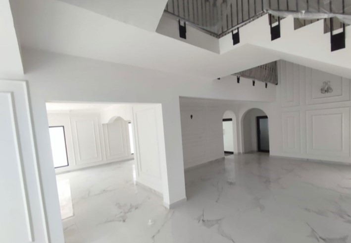 tting room, bedroom, very large kitchen, and bathroom. Second floor, 4 bedrooms and 3 bathrooms. Third floor, maid’s room, laundry room, and storeroom. The villa has half furnishings, air conditioners and curtains. 700 dinars are required.